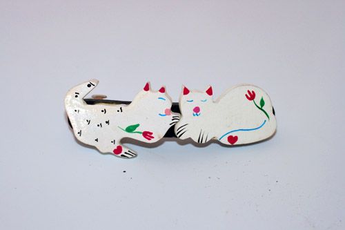 その他 アクセサリー バレッタ ウッドビーズ 二匹のねこ ホワイト