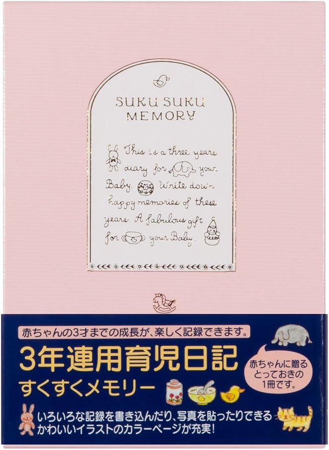 ミドリ 育児日記 育児ダイアリー すくすく ピンク 3年連用 育児ノート 出産祝い 日記 12190006
