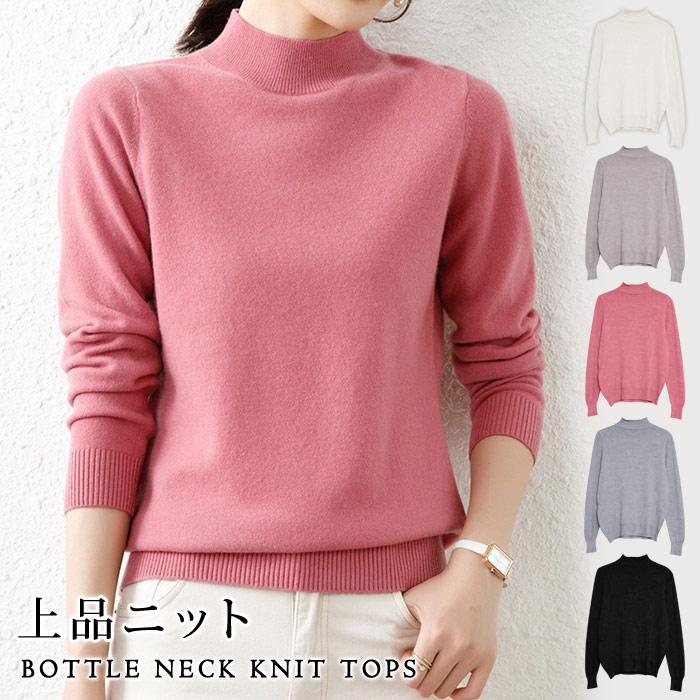 ニットトップス レディース 秋 冬 秋冬 黒 ニット トップス 長袖 無地 セーター ボトルネック ハイネック ブラック ベージュ ピンク グレー 30代 送料無料