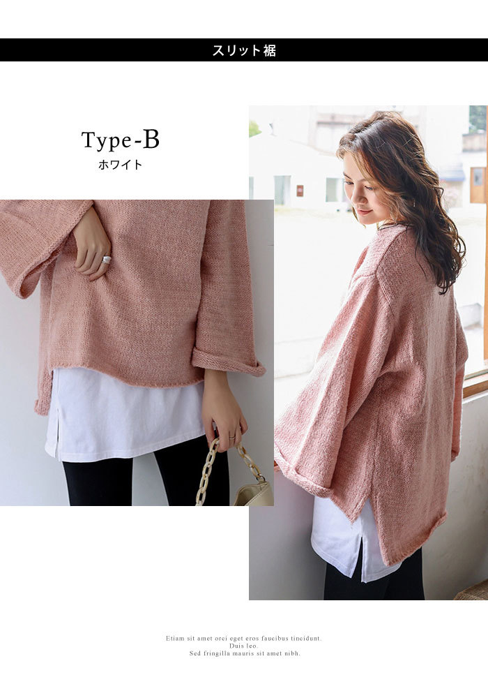 付け裾 つけ裾 レディース 重ね着風 体型カバー スリット 無地 シャツ風 レイヤード フェイクシャツ ゆったり ブラック ホワイト 秋冬 黒 白 20代 30代 40代