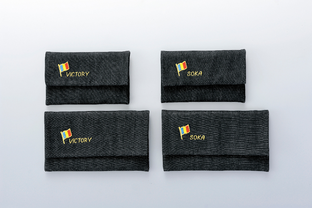■表面に金色の糸で『SOKA』または『VICTORY』の文字の刺しゅうが入っており、三色マークのワンポイントも入っております。