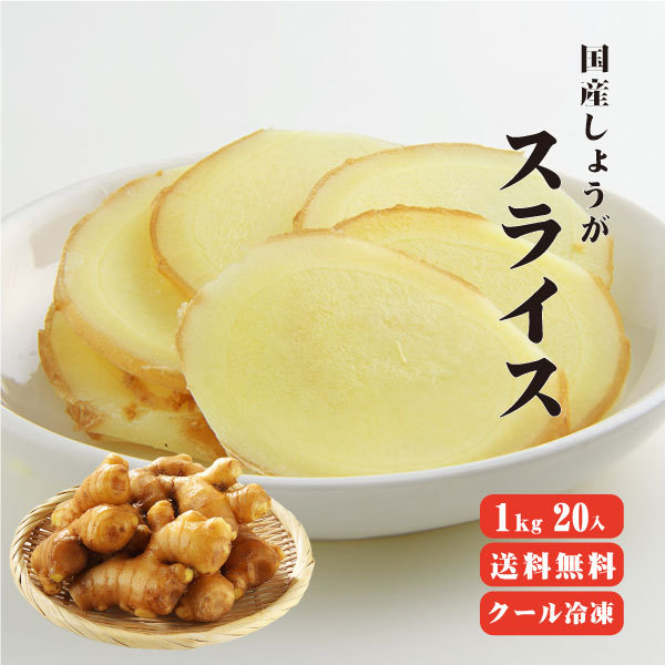 国産冷凍生姜 スライス 1kg×20袋 送料無料 冷凍便 冷凍品以外との同梱不可 業務用 まとめ買い スライス 平切り しょうが 無添加 無着色 香辛料 坂田信夫商店