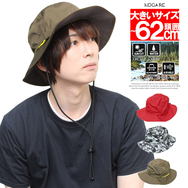 【メール便で送料無料】 撥水 アドベンチャーハット メンズ 大きいサイズ 選べるサイズ 調節 紐付き アウトドア サファリハット ハット