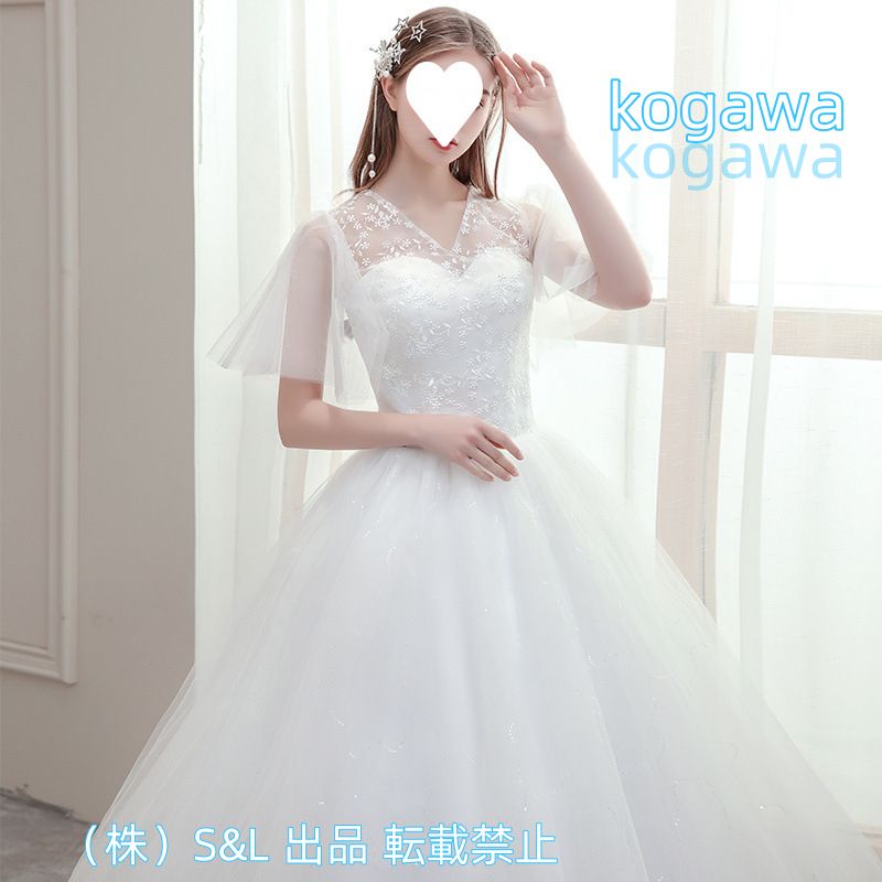 ウェディングドレスロングドレス編み上げタイプ豪華な花柄花嫁結婚式オフショルダーレース白株式会社S&Lホワイト