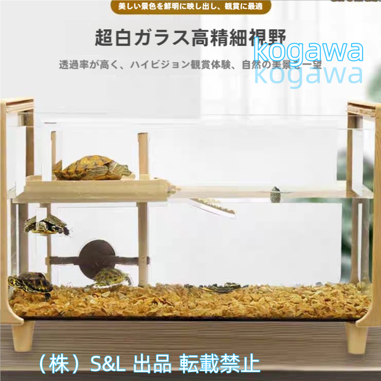 亀水槽大きいガラスボックスカメの水槽タートルタンク排水管付きS&L日向ぼっこ台爬虫類両生類アクセサリー飼育ケースカメ生息地亀観察飼育用ガラス水