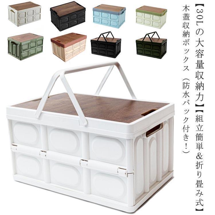 折りたたみコンテナ 収納ボックス 30L 取手付き 多機能 木蓋付き 防水バッグ付き コンテナボックス テーブル 折りたたみ フタ付きコンテナ 屋外 株式会社S&L