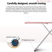 ●T字型フットチューブ設計、アイロン台の開閉角度が大きく、着地面積が広く、アイロン台のサポートが安定してしっかりしており、水平クロスバーとレベリングフットカバーが巧妙に一致し、アイロンがけ スムーズで安全です。