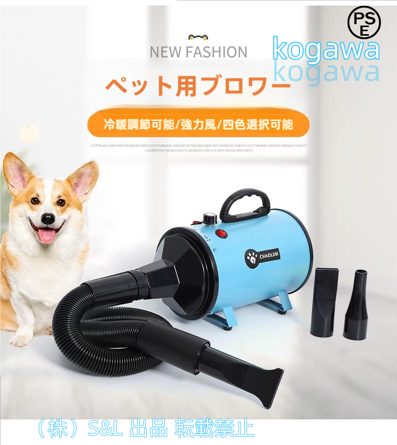 ペットドライヤーペットヘアードライヤーPSE取得商品ブロワー無段階速度制御送風機3つノズル付き風速株式会社S&L温度調整可能強いブロー力騒音低減