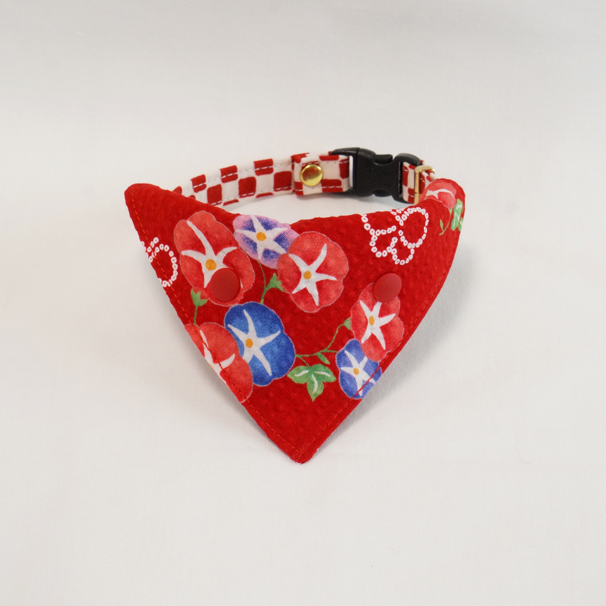 首輪用バンダナ 首輪にワンタッチでつけられるバンダナ ★シンプルな朝顔のバンダナ(赤)★