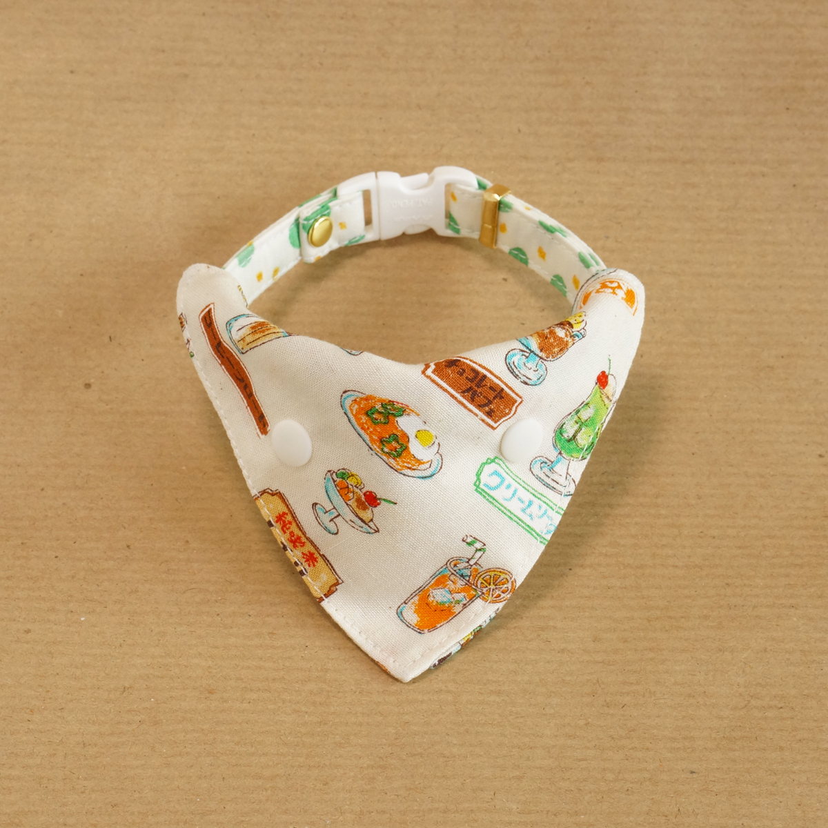 首輪用バンダナ 首輪にワンタッチでつけられるバンダナ ★レトロ喫茶のバンダナ(生成り)★