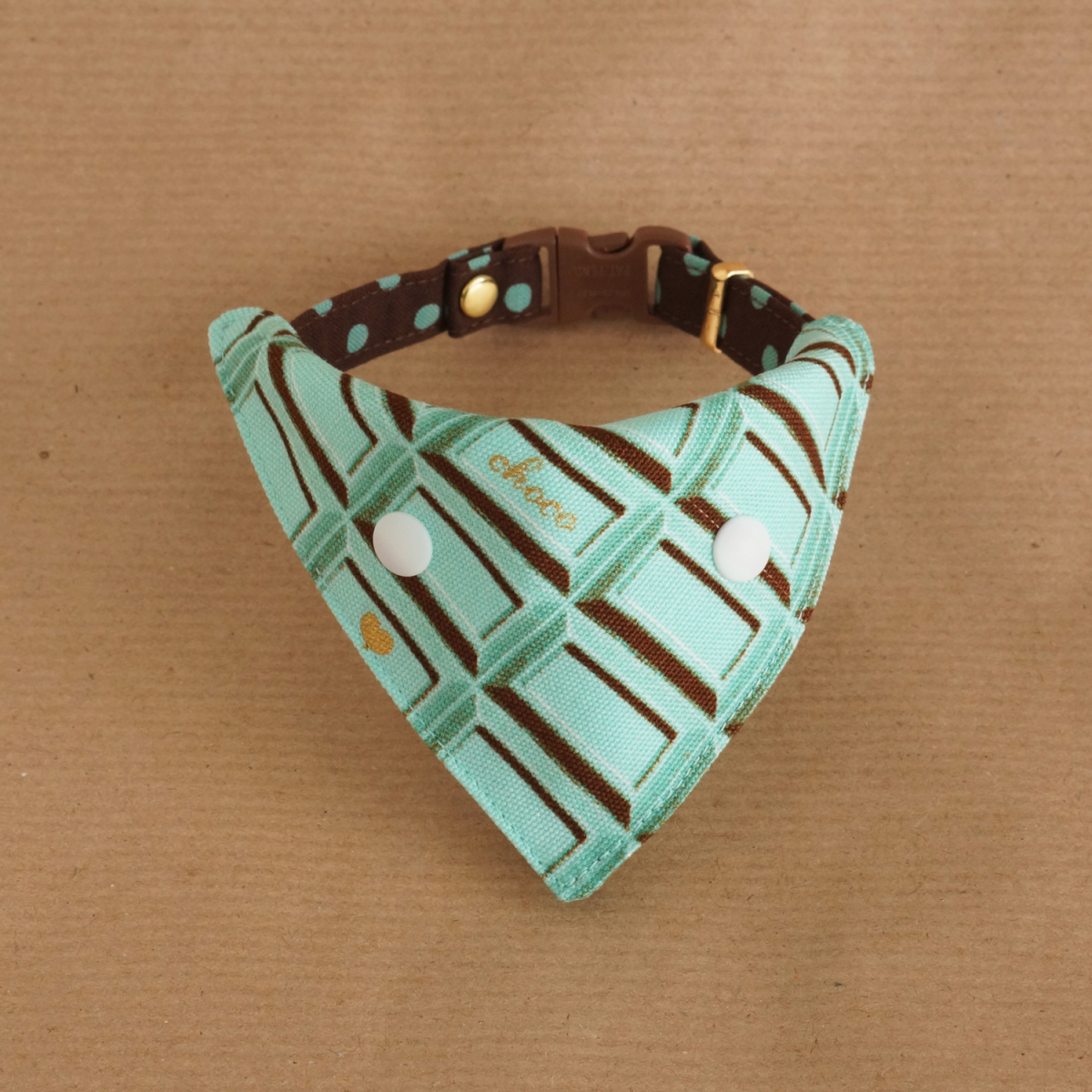 首輪用バンダナ 首輪にワンタッチでつけられるバンダナ ★板チョコのバンダナ(ミント)★