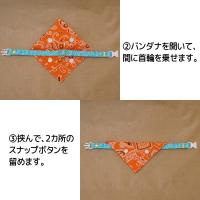 ★こちらのバンダナは、プラスチックスナップで首輪に挟んで使用します。