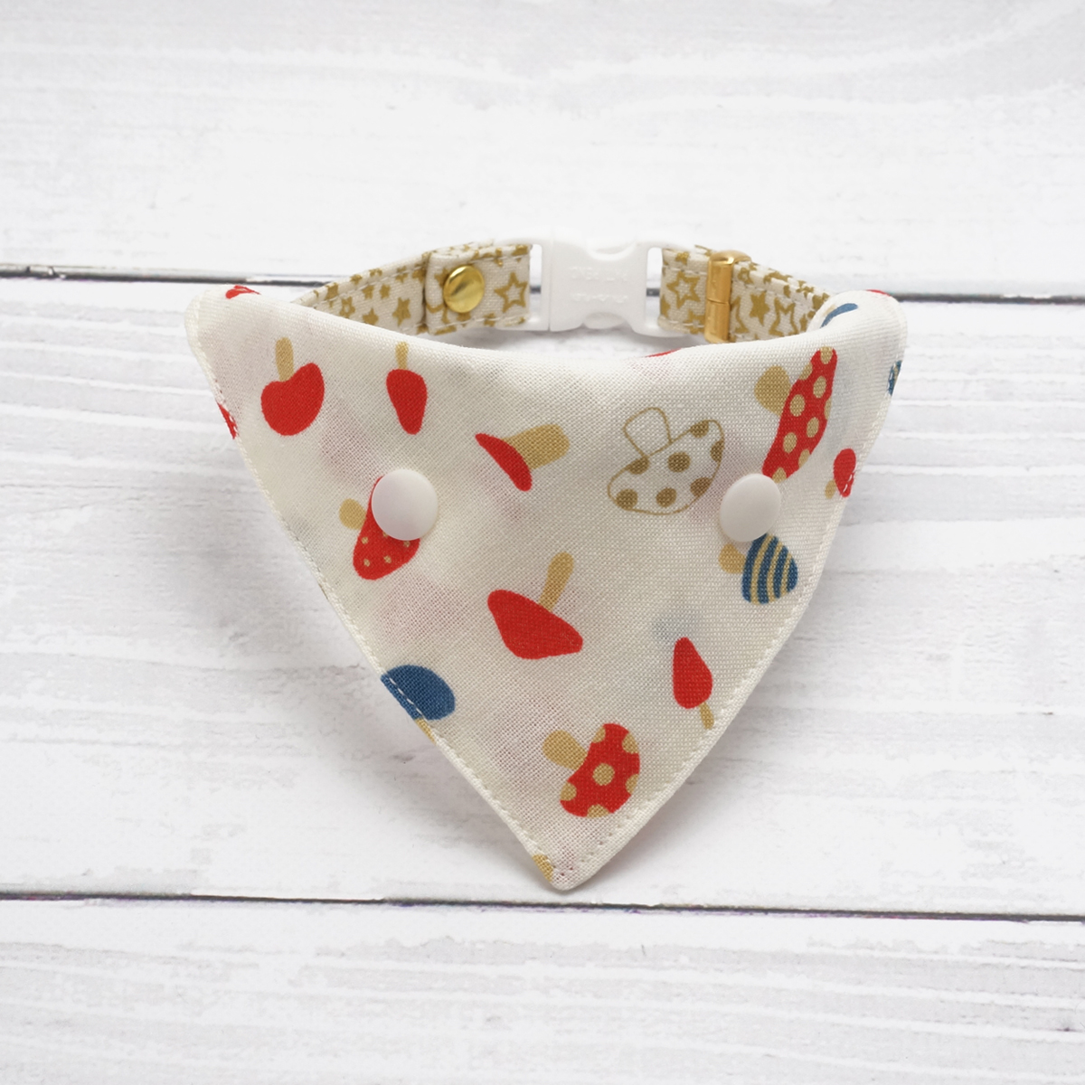 首輪用バンダナ 首輪にワンタッチでつけられるバンダナ ★きのこのバンダナ(白)★