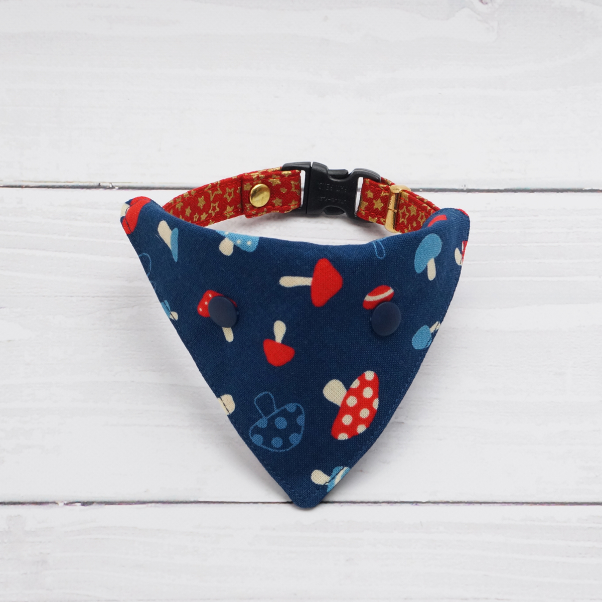 首輪用バンダナ 首輪にワンタッチでつけられるバンダナ ★きのこのバンダナ(紺)★