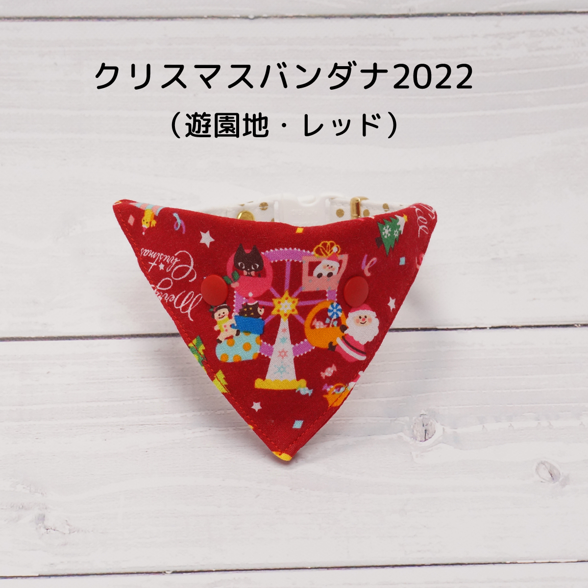 首輪用バンダナ 首輪にワンタッチでつけられるバンダナ ★クリスマスバンダナ2022(遊園地・レッド)★