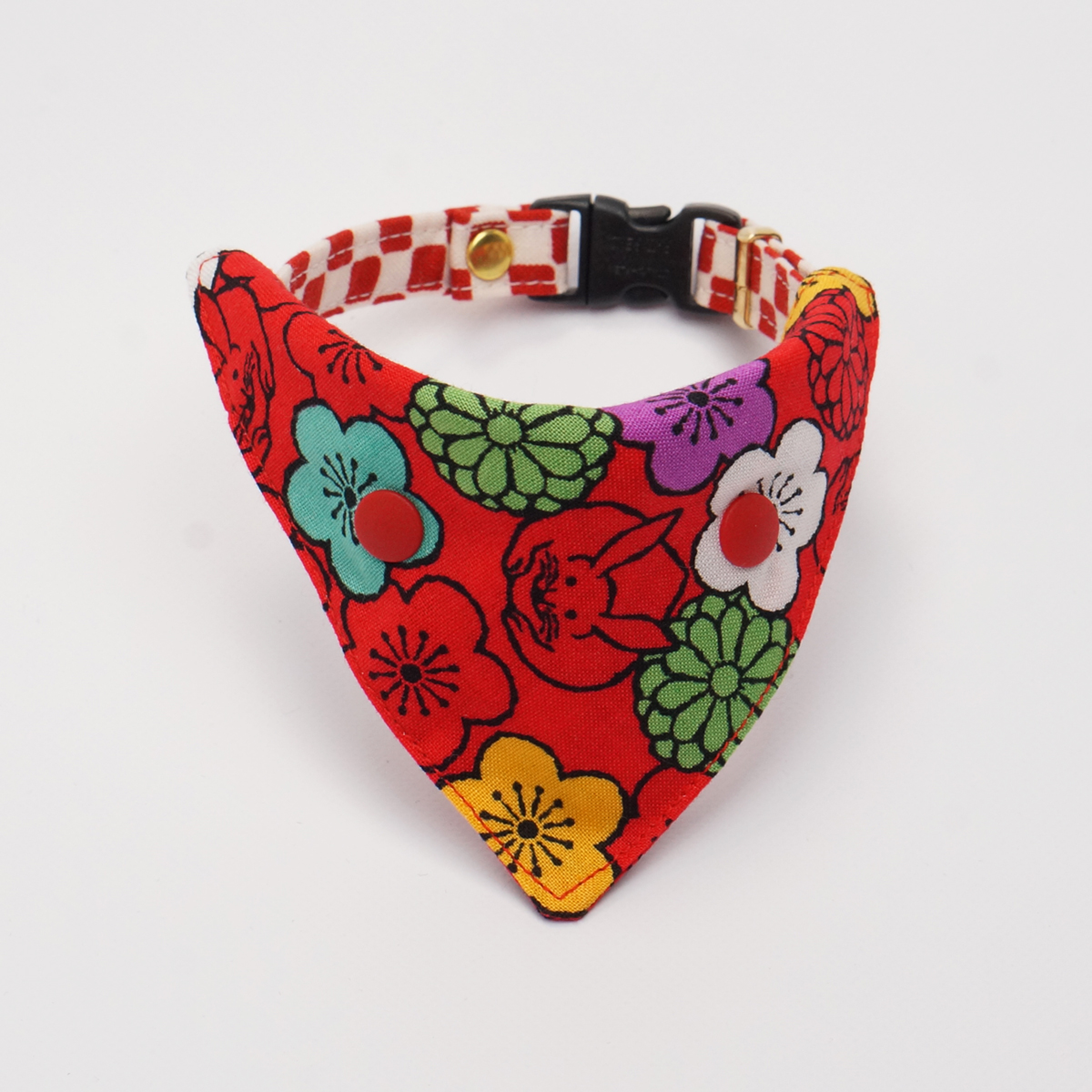 首輪用バンダナ 首輪にワンタッチでつけられるバンダナ ★兎と梅のバンダナ(赤)★