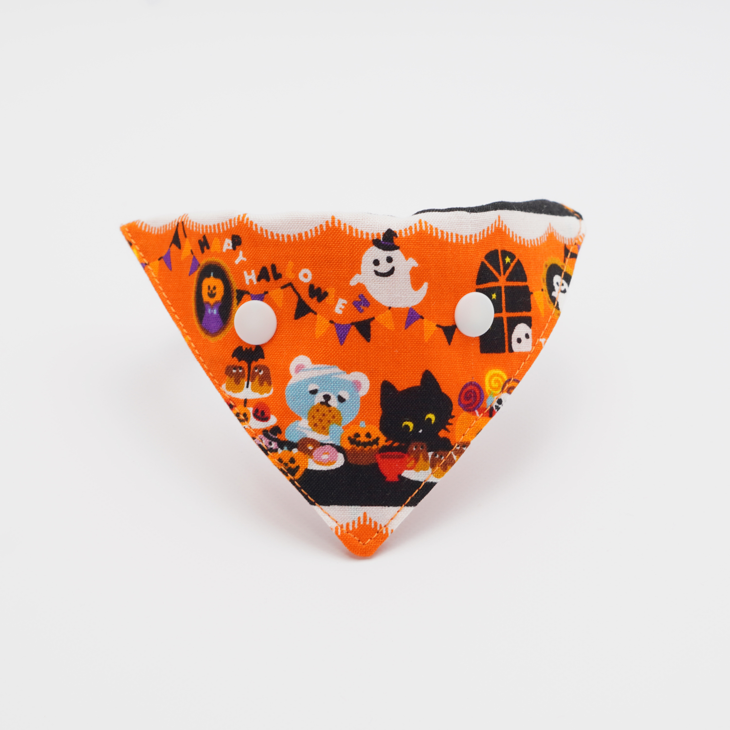 首輪用バンダナ 首輪にワンタッチでつけられるバンダナ ★ ハロウィンバンダナ2024(お茶会・オレンジ)★