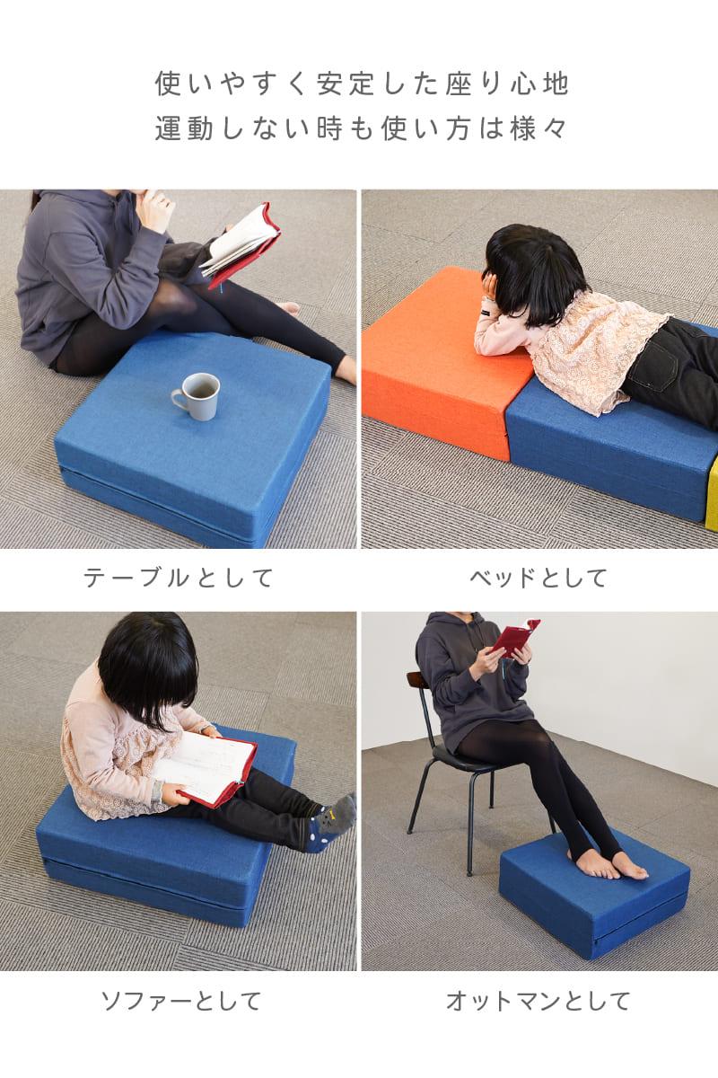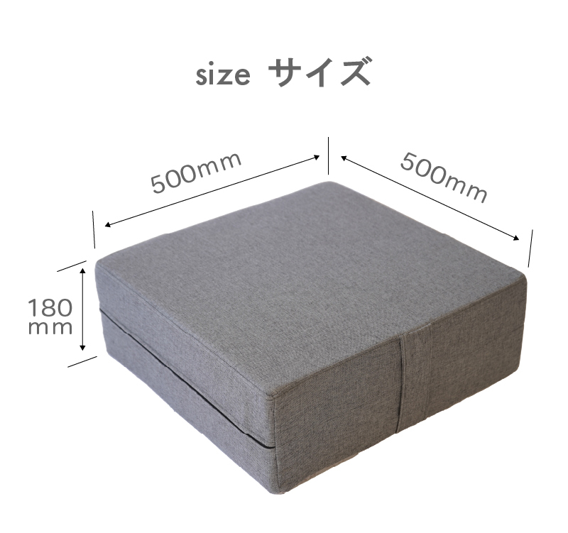 ジャンプした際に踏み外しにくい50×50cmと大判サイズのクッションです。