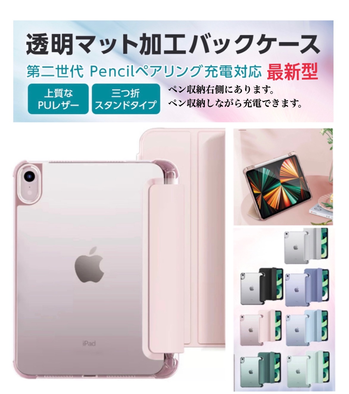 フロントカバーを3つ折りにして三角スタンドにすると、フロントカバーに均等に内蔵されたマグネットが三角形状を安定させる為、動画鑑賞などに適した角度やタイピングに適した角度に(2WAYスタンド機能付)してiPadを楽しむことができます。