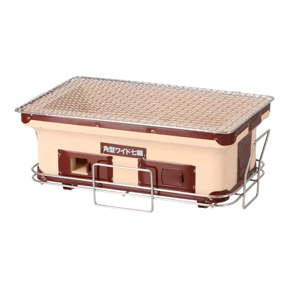 ◇◇ 【特長】 ●焼き面が大きく使いやすい角型ワイドタイプ ●専用台付き ●本格的な炭火焼が楽しめます 【仕様】 ●サイズ(約):W400×D240×H155(mm) ●材質 本体:珪藻土、ブリキ 網:スチール 台:スチール ●付属品:目皿×2、網400×240mm×1、専用台×1 ●重量(約):9kg ●MADE IN CHINA ●替網 JANコード/4522831848362 コーナン オリジナル BBQ網 40×23cm ※品切れの場合があります ※商品の特性上、細かなヒビ、欠けが存在しますが使用上問題ございません ※保管場所はできるだけ風通しが良く、水ぬれや湿気のない場所で保管をお願いいたします。急激な温度差が発生した場合、ひび割れの要因となります。 ※七輪は割れ物です。落下させたり、ぶつけたりし衝撃を加えると掛けたり割れたりする恐れがありますのでご注意ください。 【警告】 ※「取り扱いを誤った場合、死亡または重傷を負うおそれがある」内容です。 ●締め切った室内やテント内、車などの換気の悪い場所では絶対に使用しないでください。