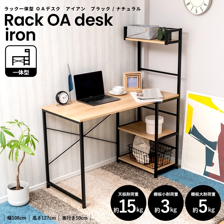 【ポイント5倍 4/9(木)〜】コーナン オリジナル LIFELEX ラック一体型 OAデスク アイアン BK/NA ブラック/ナチュラル