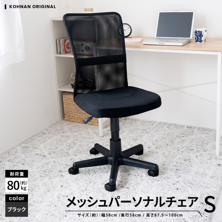 ◆コーナン オリジナル LIFELEX メッシュパーソナル チェアS ブラック 全体サイズ(約):幅500×奥行600×高さ875〜1000mm