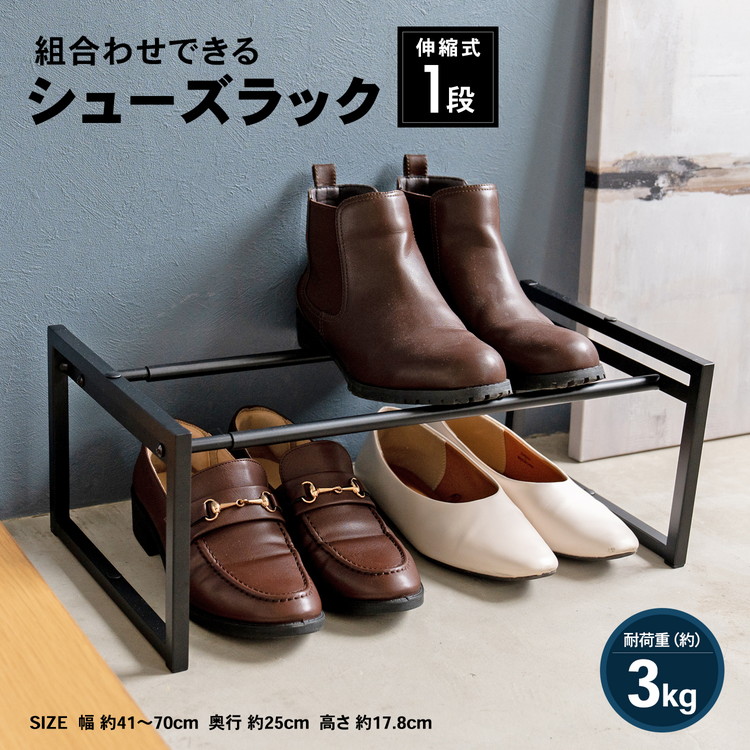 コーナンオリジナル LIFELEX 組合せできるシューズラック 1段 伸縮式 BK