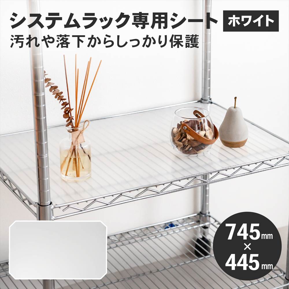 ラック シート ホワイト 幅74.5x44.5cm メタル ワイヤー システムラック シェルフ 棚用 半透明 クリア コーナン LIFELEX システムラックシート WH-7545PP