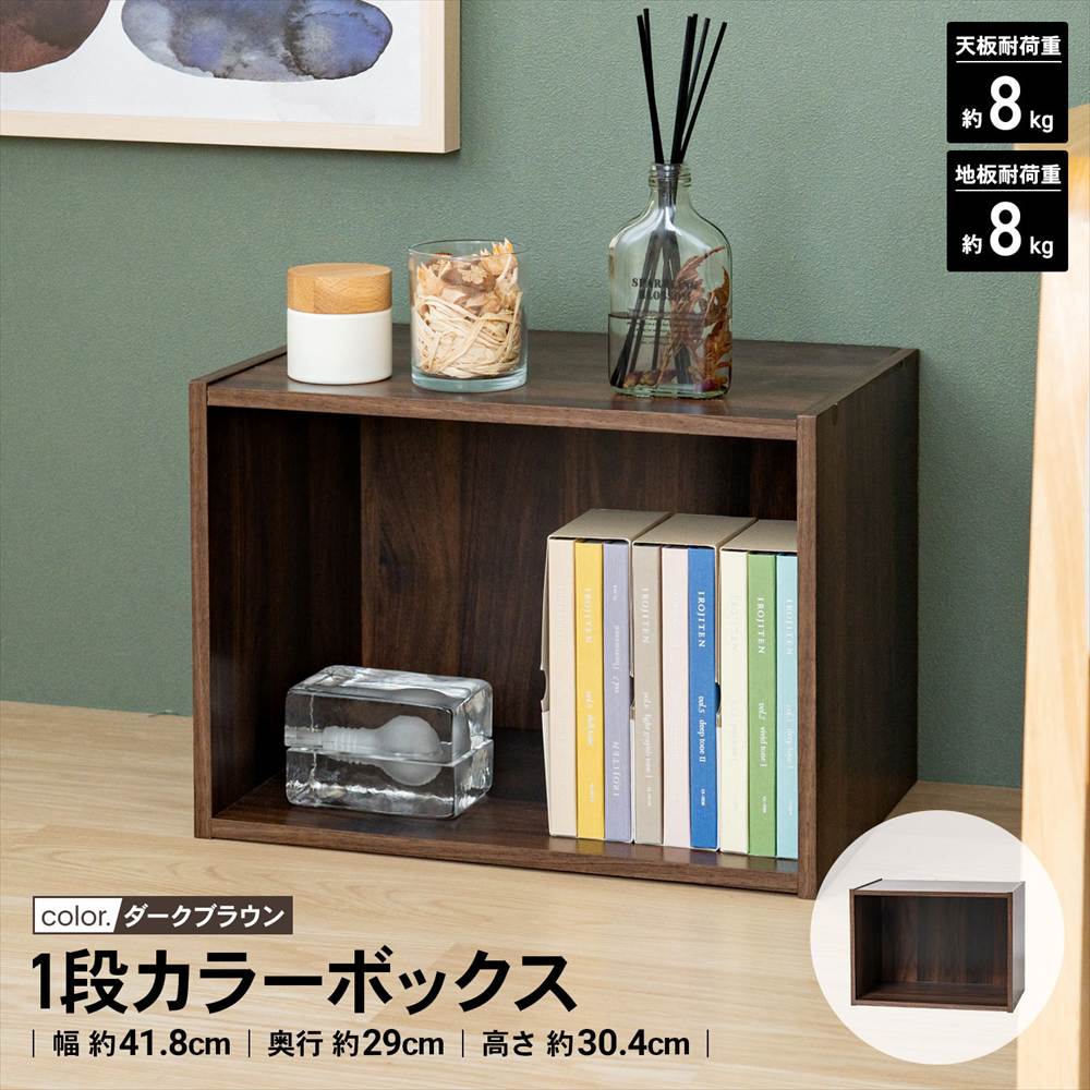 カラーボックス 1段 収納 一段 テレビ台 ダークブラウン カラーボックス横置き 一段ボックス 便利 一人暮らし 本棚 収納棚 棚 漫画 コミック 横置き 収納ボックス 収納ケース コミックラック 一人暮らし 子供部屋 C-BOX01 ◇◇ ※お客様組立品です 必要工具:ドライバー(別売) 【仕様】 ●サイズ:幅418×奥行290×高さ304(mm) ●表面材:プリント紙化粧繊維板 ●表面加工:なし ●耐荷重 天板:8kg 地板:8kg ※耐荷重は測定値であり、保証値ではありません。