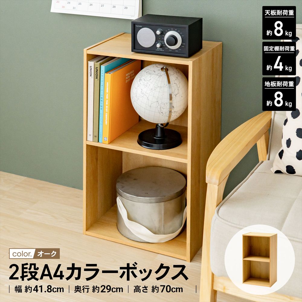 カラーボックス 2段 収納 二段 テレビ台 オーク カラーボックス横置き 二段ボックス 便利 一人暮らし 本棚 収納棚 棚 漫画 コミック 横置き 収納ボックス 収納ケース コミックラック 一人暮らし 子供部屋 ◇◇ A4サイズも入る2段式のカラーボックスです ※お客様組立品です 必要工具:ドライバー(別売) 【仕様】 ●サイズ:幅418×奥行290×高さ700(mm) ●表面材:プリント紙化粧繊維板 ●表面加工:なし ●耐荷重 天板:8kg 固定棚:4kg 地板:8kg ※耐荷重は測定値であり、保証値ではありません。 ●オーク