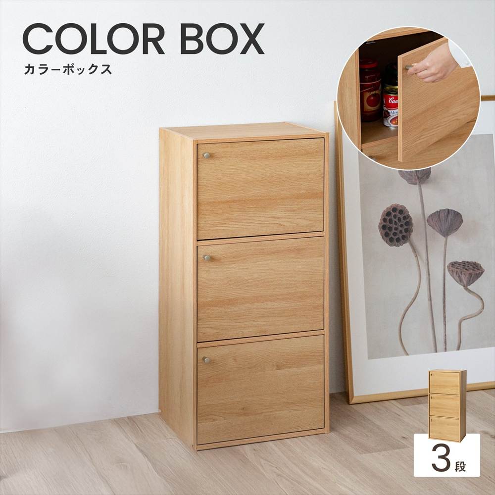カラーボックス 3段 扉付き オーク 木目調 スリム おしゃれ 三段ボックス 収納棚 クローゼット 子ども部屋 おもちゃ 本棚 漫画 文庫本 ドア付 LIFELEX