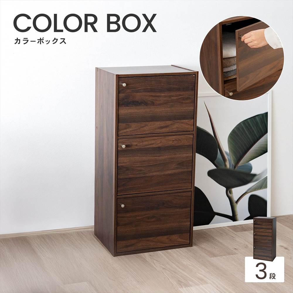 カラーボックス 3段 扉付き ダークブラウン 木目調 スリム おしゃれ 三段ボックス 収納棚 クローゼット 子ども部屋 本棚 漫画 文庫本 おもちゃ