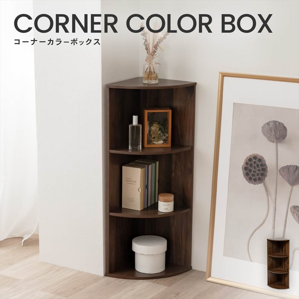 カラーボックス コーナーラック 3段 ダークブラウン 木目調 スリム 横置き シェルフ 本棚 おしゃれ 収納 整理 キッチン 子ども部屋 おもちゃ 漫画 文庫本