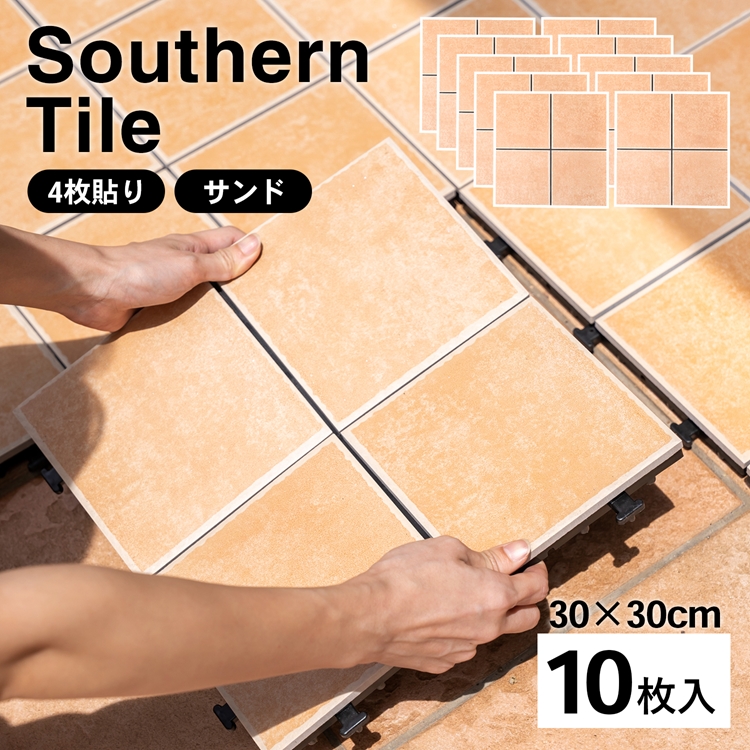 ◆ジョイントタイル 磁器製 4分割タイプx10枚セット 耐久耐水 タイルデッキ 連結 ベランダ パネル DIY 簡単設置 ガーデン 庭 バルコニー コーナン サザンタイル