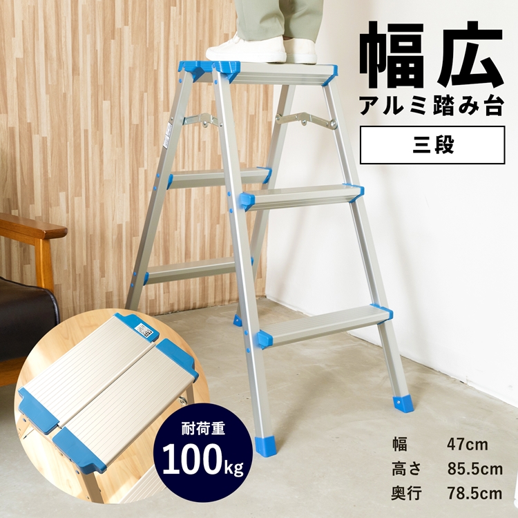 年末年始セール!1/16 1:59まで ◆アルミ 踏み台 脚立 折りたたみ 3段 高さ85.5cm 天板+9.5cm幅広 滑り止め 軽量 錆びにくい 持ち運び 耐荷重100kg 踏台