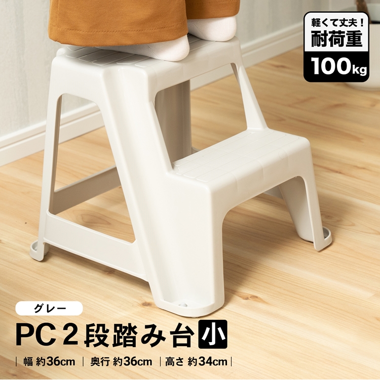 踏み台 2段 小型 約幅36cm 奥行36cm 高さ34cm 耐荷重100kg 軽量 ステップ台 2段ステップ 安定 滑りにくい 持ち運び楽々 昇降台 作業用 玄関 コーナン