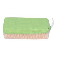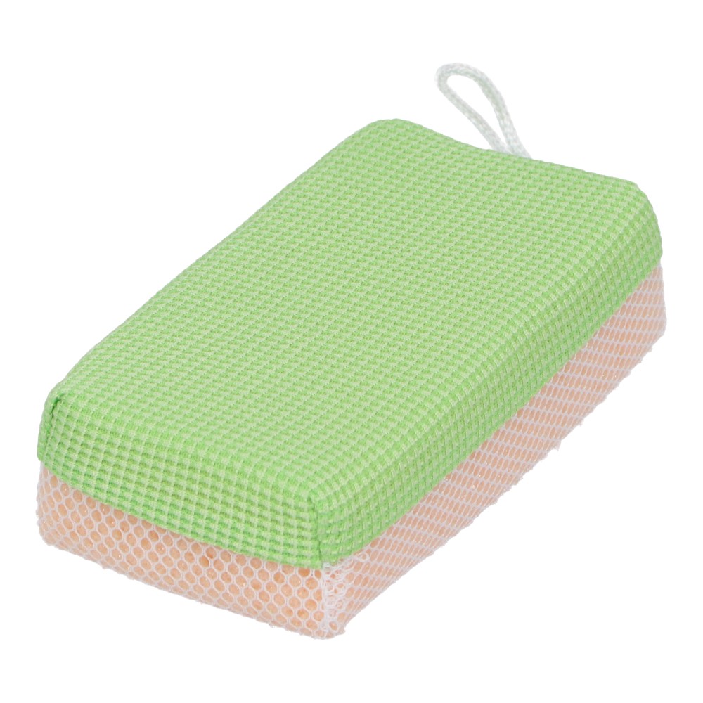 ◇◇ 【特長】 ●グリーンのクロス面は超極細繊維。キズをつけずに水だけで汚れをスッキリ落とします。 ●裏面はポリエステルネット。洗剤を含ませた時の泡立ちがよく、汚れ落ちもよいネットです。 【仕様】 ●材質 クロス:ポリエステル85%、ナイロン15% ネット:ポリエステル100% スポンジ:ポリウレタンフォーム ヒモ:ポリプロピレン ●耐熱温度:60度