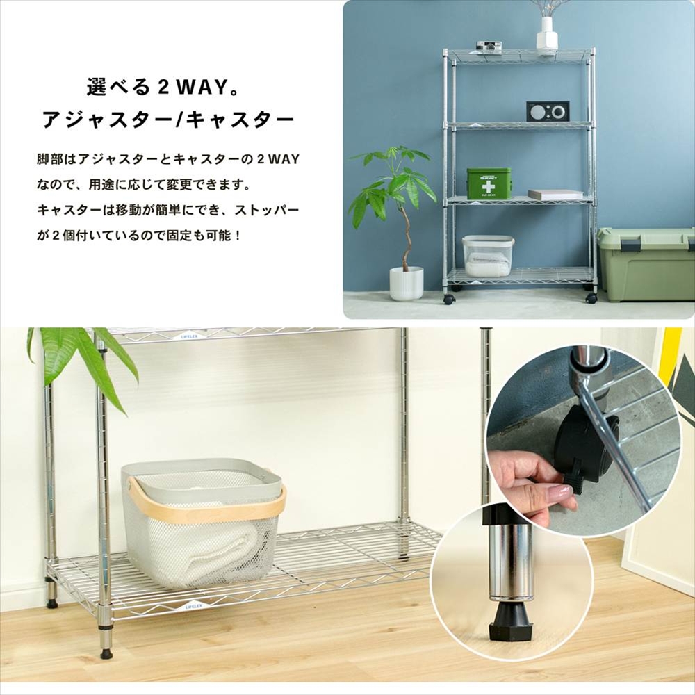 ●材質:スチール(棚板・ポール部分)、ナイロン(アジャスター部分)