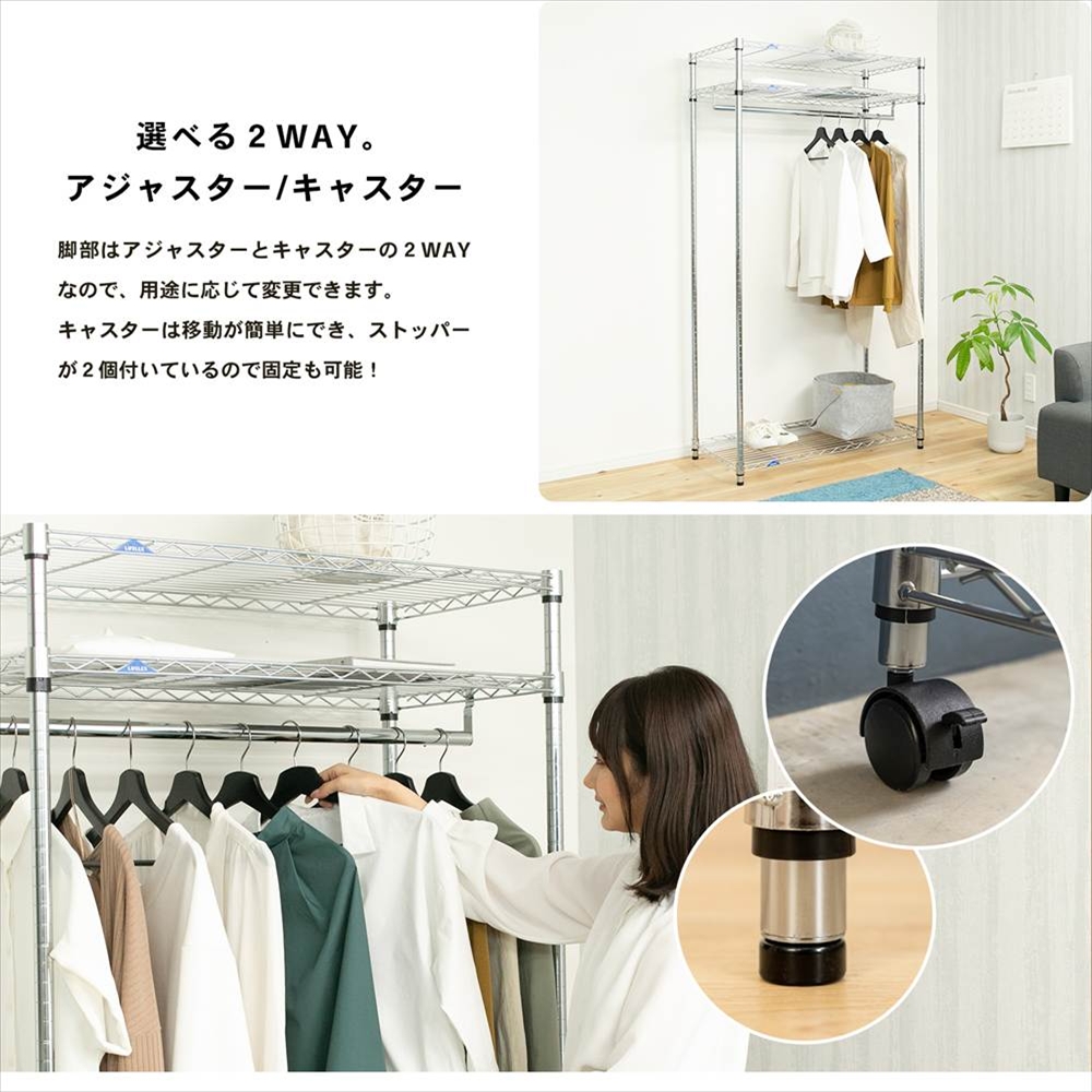 ラック ワードローブ 90W スチール メタル ワイヤー システムラック キャスター付き 収納 シルバー 洋服 掛け コーナン LIFELEX