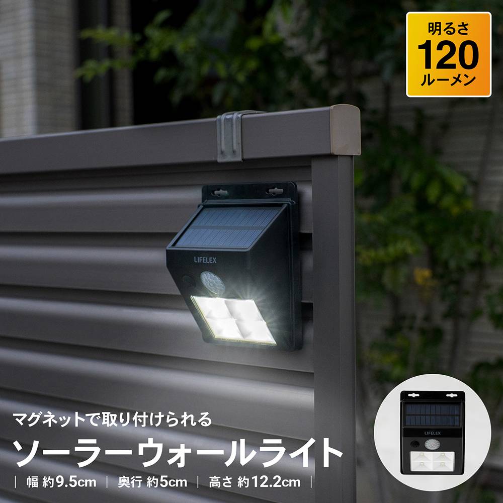 コーナン オリジナル LIFELEX マグネットで取り付けられるソーラーウォールライト KSWL10−0499 黒