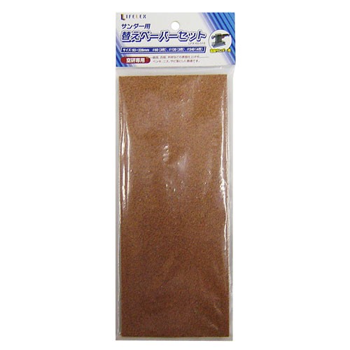 ◇◇ #60・120・240が入ったお得なセットです。 鉄板、合板、木材などの表面仕上げや ペンキ、ニス、サビ落としに最適です。 このペーパーは、電動サンダー・サンディングブロック・ラバーブロックのほか、 木などに巻きつけても使用できます。 サイズ:93×228mm #60(3枚)、#120(3枚)、#240(4枚)