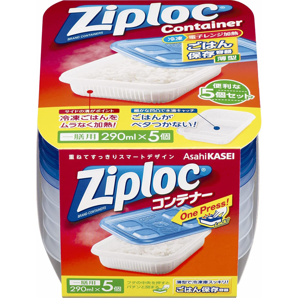 旭化成ホームプロダクツ 旭化成 ジップロックコンテナー ごはん保存容器 一膳用 5個入り 5個入り (約)縦117×横156×高37mm