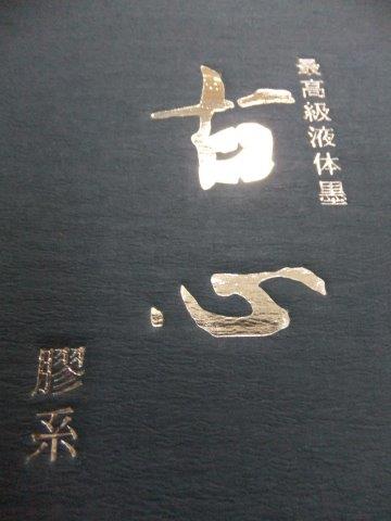 〇濃墨では幽玄な紫紺。淡墨では紫味の強い茶紫系。〇天然膠製ですので固形墨とまぜて使用できます。