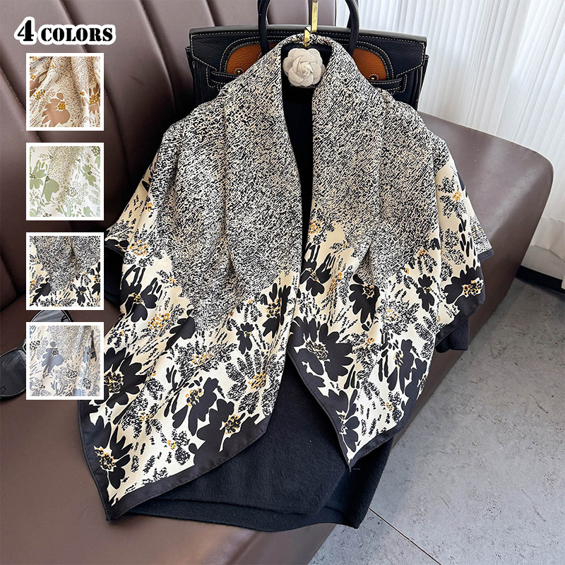 スカーフ 大判 正方形 花柄 ストール レディース プレゼント ギフト ネックスカーフ バンダナ uv UVカット スカーフ 春 夏 秋 冬 上品 大人可愛 おしゃれ W-766
