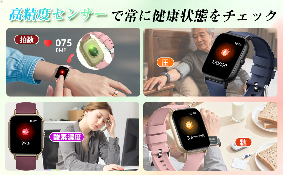 2026最新 スマートウォッチ 歩数計 睡眠管理 着信通知 血圧測定 高精度心拍数 ケットウチ 血中酸素 女性生理管理 健康管理 bluetooth通話 爆買
