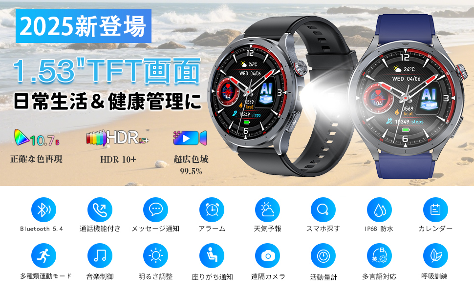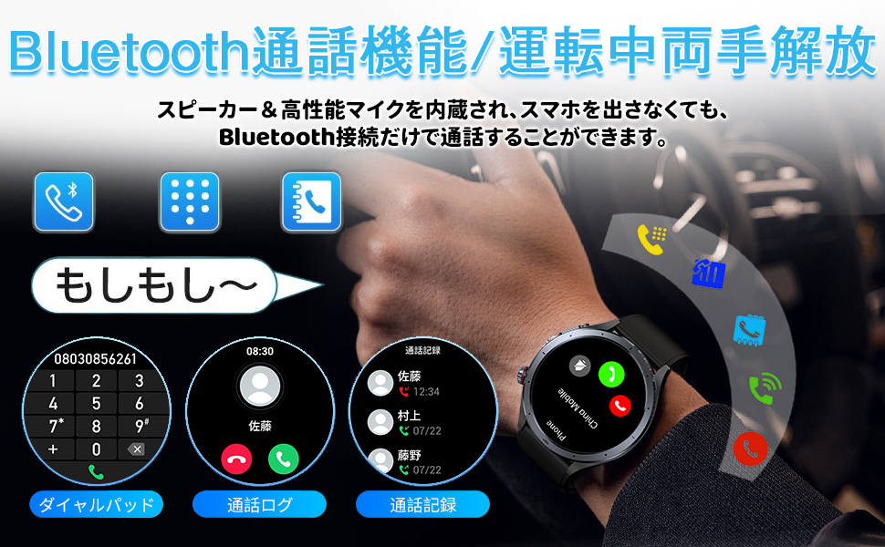 Bluetooth5.4搭載の該当スマートウォッチは安定性が飛躍的に向上され、スピーカー&高性能マイクが内蔵され、携帯電話を出さなくても、通話することができます。携帯電話に着信が来た時に、スマートウォッチは振動しながら音でお知らせします。