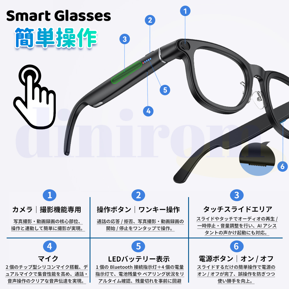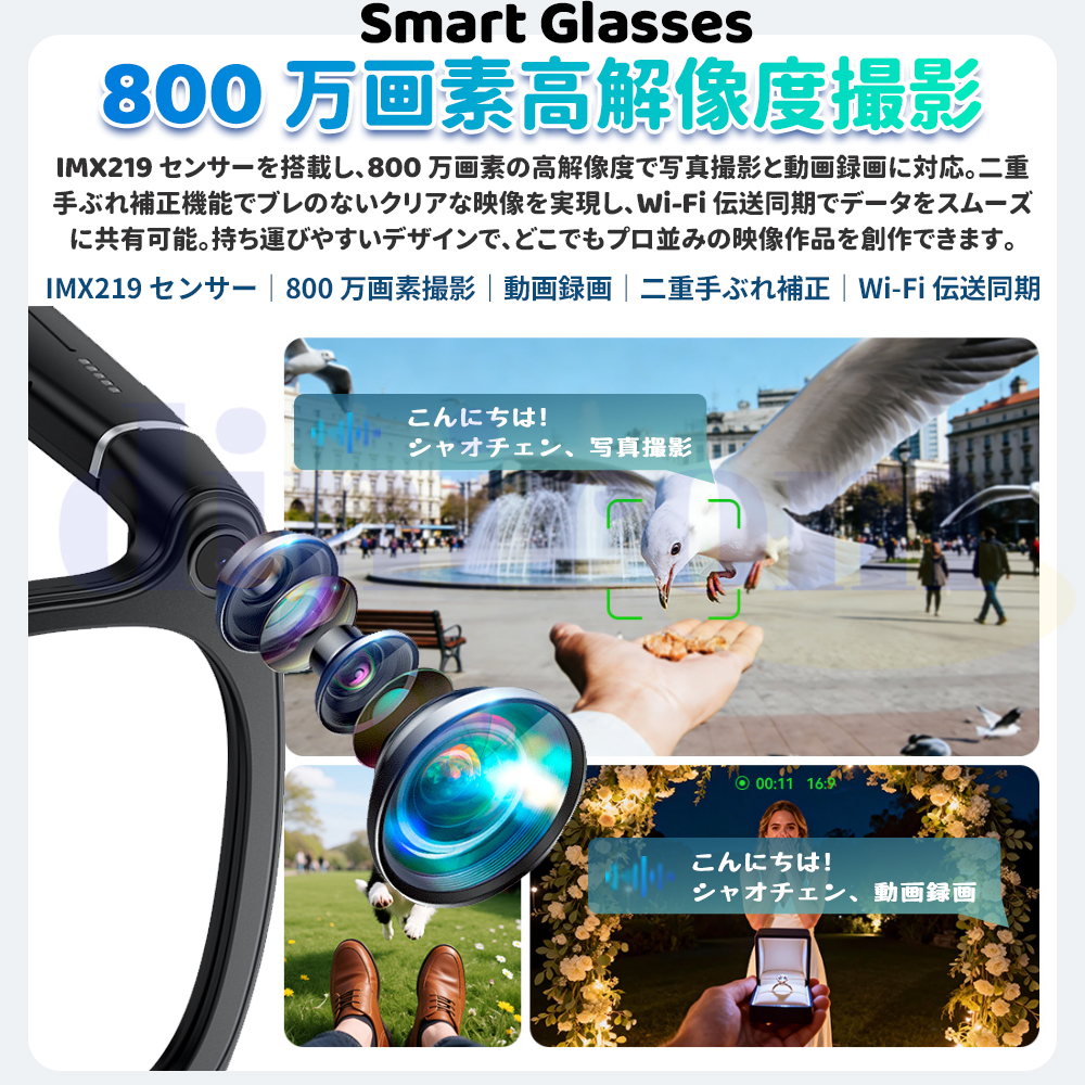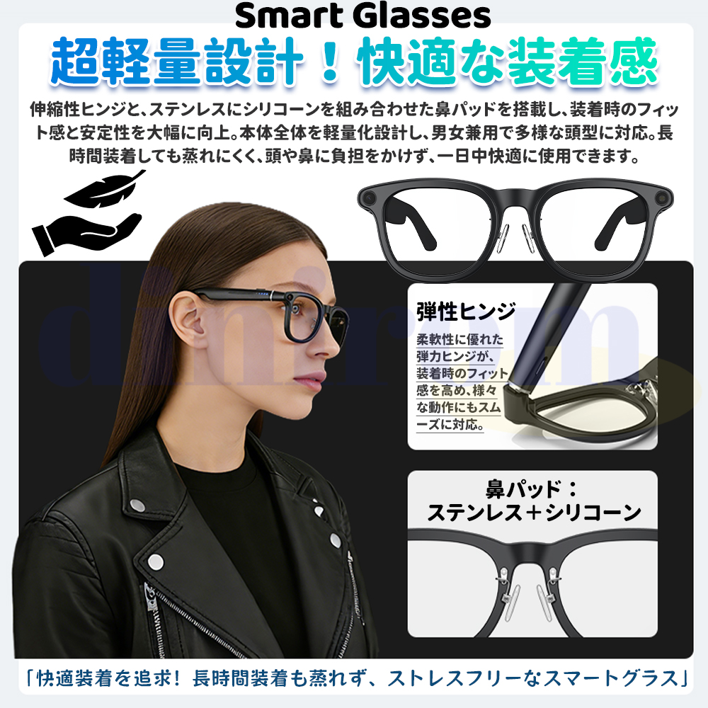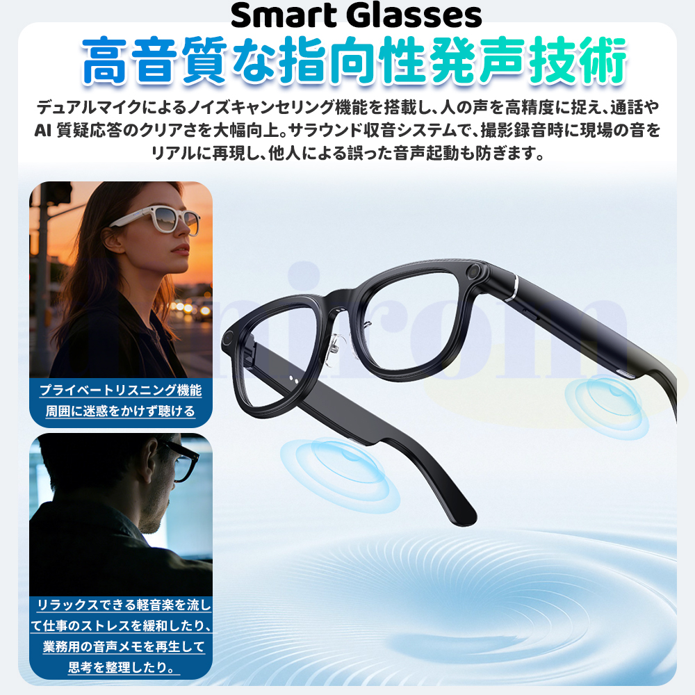 臨場感があふれる体験をもたらす新商品の登場――スマートグラス。 耳を塞がなく、音の振動は頭骨を通って内耳に直接伝わる骨伝導技術で、ちょっと休憩して音楽を聴いていても、仕事中電話をかけていても、同時に外界の音を聞き取ることができ、より安心感を得ることができます。
