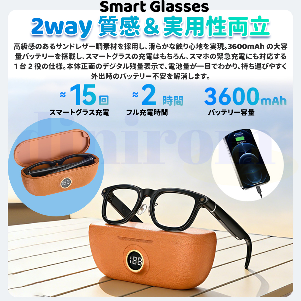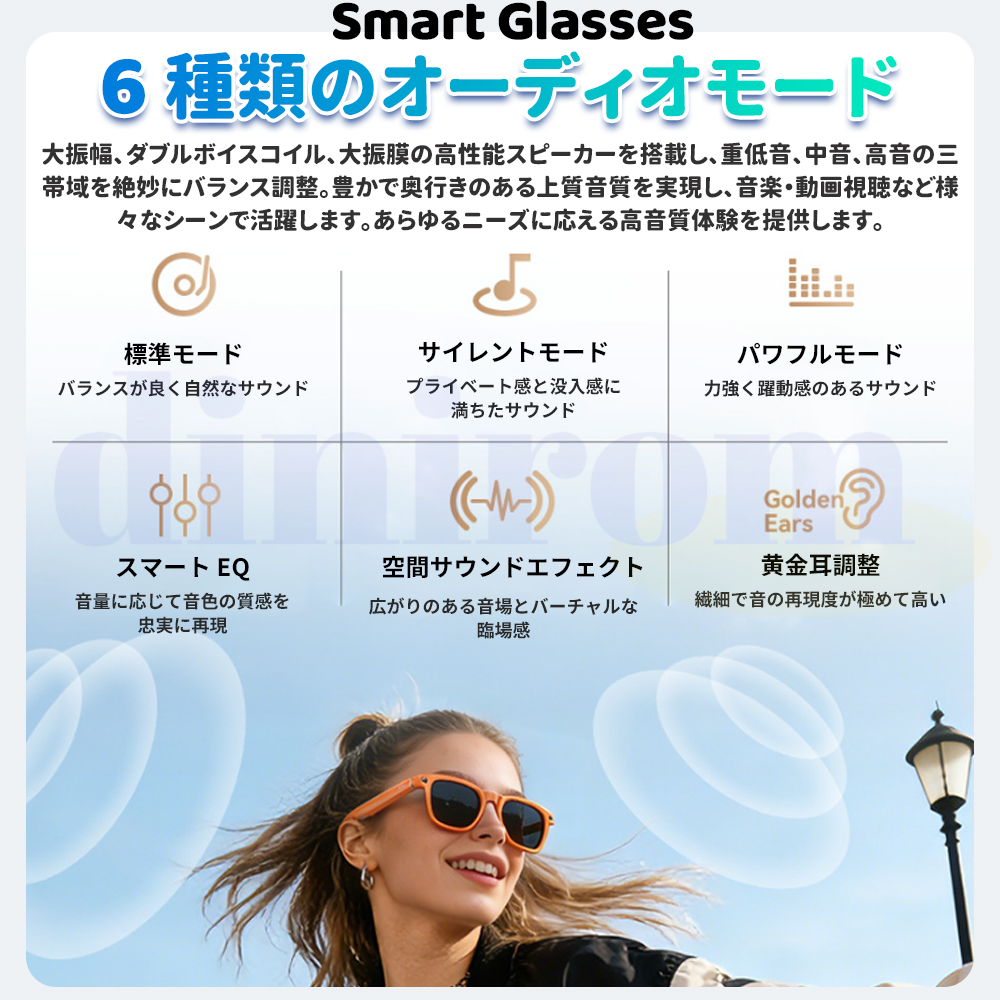 オープンイヤースピーカーシステムを備えたBluetoothグラスは、イヤホンの害から耳を保護するので健康的で、お気に入りの音楽を聴きながら周囲に注意を払うことができ、HDマイクは通話中の高品質サウンドを提供します。