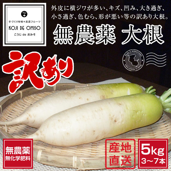 和歌山産、無農薬無化学肥料で栽培した大根です。