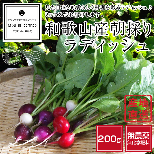 無農薬、無化学肥料で育てたラディッシュを朝採りでお届けします。